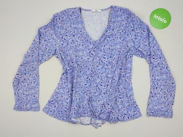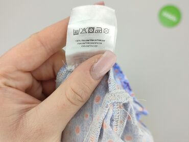 Bluzka damska YES NO, rozmiar M - Krój: luźna bluzka z krótkim rękawem, dekolt w serek, delikatne falbanki przy kołnierzu i na dole - Wzór: czarny materiał w drobne białe kropeczki z różanym motyw...