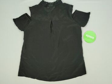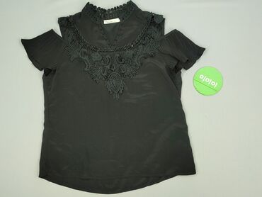 Bluzka damska JYOTHI, rozmiar M - Krój: luźny, z krótkim rękawem i okrągłym dekoltem - Cechy: doszyty pasek do przewiązania w talii (wiąże się z boku lub z przodu), prosty dół - Wzór: czarne tło z...