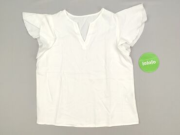 - Fason: luźny top z krótkimi, falbaniastymi rękawkami