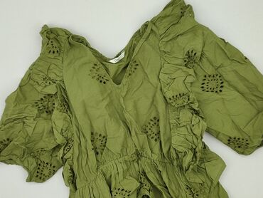 Bluzka damska ONLY - Model: krótki rękaw, luźny krój z zaokrąglonym dołem - Kolor: zielony z drobnym białym kwiatowym nadrukiem - Dekolt: okrągły - Zapięcie: zamek błyskawiczny z tyłu przy dekolci...