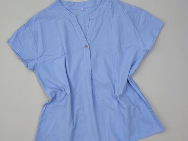 Bluzka damska oversize – rozmiar XL - Kolor: jasny błękit - Krój: luźny, z lekko opadającym rękawem, dekolt w kształcie litery V z krótką stójką - Materiał: 100% poliester (metka widoczna na zdjęc...Stan:
