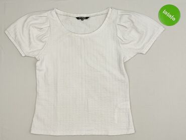 Subtelna, kobieca bluzka o strukturalnym materiale i efektownych bufiastych rękawach, wygodna dzięki dodatkowi elastanu. Rozmiar i skład potwierdzone na metce.