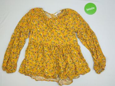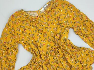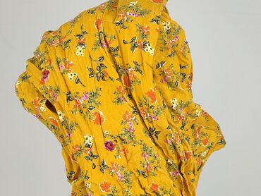 Bluzka damska z długim rękawem, w kwiatowy print na żółtym tle. - Krój: lekko taliowana, z marszczeniami przy mankietach; okrągły dekolt z małym rozcięciem i zapięciem na guzik z tyłu. - Wzór/kolo...Stan: