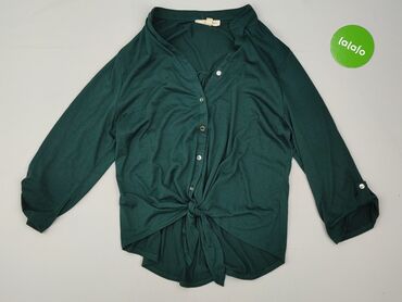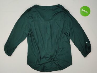 Zielona bluzka damska z długim rękawem - Krój: luźniejszy, delikatnie rozkloszowany od linii biustu, zaokrąglony dół - Dekolt: szeroki, okrągły - Zapięcie: krótka listwa z trzema jasnymi guzikami ...