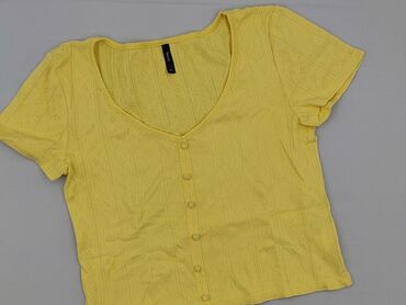Bluzka damska Reserved, rozmiar XS - Kolor: pastelowy żółty - Fason: krótki rękaw, okrągły dekolt, ściągacze przy mankietach i u dołu - Wyróżnik: ażurowa, przestrzenna siateczkowa faktura na przod...