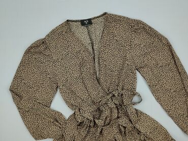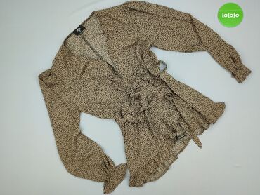 Bluzka damska H&M w panterkę - Krój kopertowy (wrap) z wiązaniem w talii - Długi rękaw z lekkim marszczeniem - Dekolt w kształcie V - Wzór: leopard/panterka w odcieniach beżu, czerni i brązu - Mat...