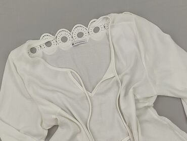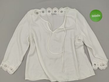 Bluzka damska Szachownica, rozmiar S - Kolor: biały - Fason: zapinana z przodu na cztery guziki, długi rękaw z delikatną gumką przy mankiecie - Dekolt: głęboki V z wstawką z koronki oraz wiązaniem...