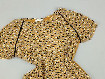 Bluzka damska Promod - Kolor: musztardowy z drobnym, geometrycznym nadrukiem (rombiki w czerni i bieli) - Fason: lekko taliowany, zaokrąglony dół; długie rękawy z mankietami - Dekolt: okrągły z oz...