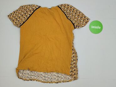 Bluzka damska Promod - Kolor: musztardowy z drobnym, geometrycznym nadrukiem (rombiki w czerni i bieli) - Fason: lekko taliowany, zaokrąglony dół; długie rękawy z mankietami - Dekolt: okrągły z oz...Stan: