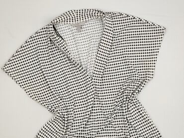 Bluzka damska H&M, rozmiar M - Krój: luźny top z krótkim, opadającym rękawem (kimono/dolman), dekolt w serek z miękką stójką - Wzór: klasyczna pepitka (czarno-biała), drobny deseń na całej powierz...