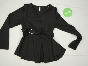 Czarna bluzka damska AMISU (New Yorker), rozmiar L. - Materiał: lekka, półprzezroczysta tkanina z wypukłą kropką (plumeti/żakardowe kropeczki) - Fason: kopertowy dekolt w kształcie litery V z deli...