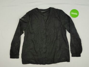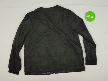 Bluzka damska Greenpoint, rozmiar 38. - Wzór: czarno‑szaro‑biały, kwiatowy. - Krój: luźny, z marszczeniem na dole i przy mankietach. - Rękawy: długie, lekko bufiaste z gumką przy nadgarstkach. - De...Stan: