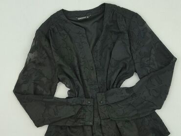 Bluzka damska Greenpoint, rozmiar 38. - Wzór: czarno‑szaro‑biały, kwiatowy. - Krój: luźny, z marszczeniem na dole i przy mankietach. - Rękawy: długie, lekko bufiaste z gumką przy nadgarstkach. - De...