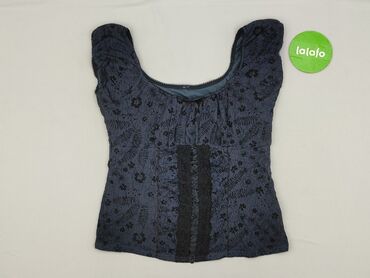 Granatowa bluzka damska z koronką - Marka: Winwoxford (z metki) - Rozmiar: S (EUR/USA), MEX 26 - Fason: dopasowany, z krótkim rękawem - Dekolt: półokrągły - Detale: koronkowe wstawki na ramionach ...