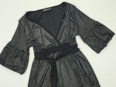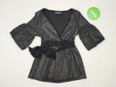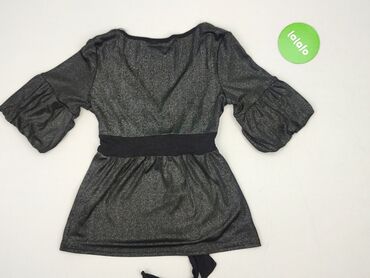 Bluzka damska Next - Krój: kopertowy przód z zakładką, dekolt w serek - Rękaw: 3/4 - Kolor: czarny z drobną, metaliczną nitką dającą delikatny połysk - Materiał (z metki): 86% wiskoza, 5% elastan,...Stan: