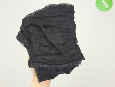 Czarna bluzka H&M z asymetryczną falbaną - Rozmiar: EUR 38 (US/CA 8, CN 165/88A, MX 8) - Materiał: 100% poliester (na metce) - Tkanina półtransparentna z wypukłym, satynowym wzorem w kropki - Krój...