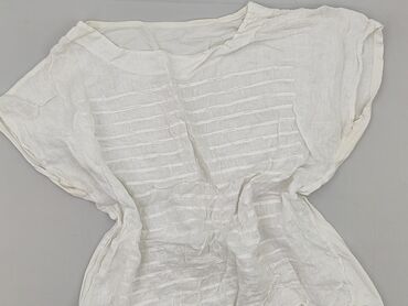 Biała lniana bluzka damska Lungo l’Arno – Made in Italy - Materiał: 100% len (metka potwierdza) - Rozmiar z metki: 1X - Krój: luźny, lekko dłuższy tył (asymetryczny dół) - Dekolt: okrągły - Rękawy...Stan: