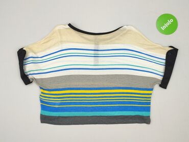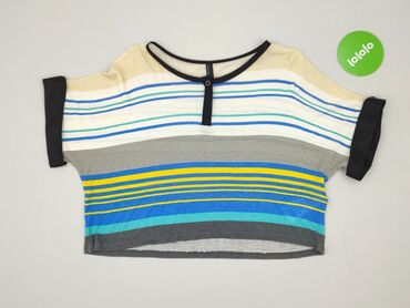 Bluzka damska Promod w paski - Marka: Promod (oryginalna metka na zdjęciu) - Krój: lekko dopasowany, z krótkim rękawkiem typu cap - Dekolt: okrągły - Wzór: biało‑granatowe paski - Detale: poziomy ...