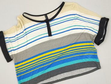 Bluzka damska Promod - Krój: luźny T-shirt z krótkim rękawem typu kimono, okrągły dekolt z prążkowaną lamówką. - Przód: efektowny, wielobarwny wzór etniczno-roślinny w odcieniach turkusu, niebiesk...