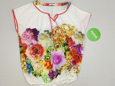 Bluzka damska w kwiatowy wzór - Krój: luźny, z obniżoną linią ramion i krótkim rękawem typu kimono - Dekolt: okrągły - Zapięcie: listwa z przodu na guziki (przez środek) - Materiał: dzianina – met...Stan: