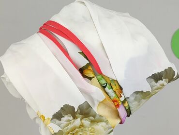 - Wzór: duży, wielobarwny nadruk kwiatów na białym tle (róże, piwonie, hortensje i inne)