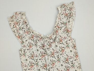 Bluzka damska House – rozmiar M - Krój: dopasowany, z krótkim rękawkiem typu cap - Dekolt: głęboki, zaokrąglony - Wzór: biało‑zielony, gęsty roślinny/kwiecisty nadruk - Materiał: 100% poliester (m...