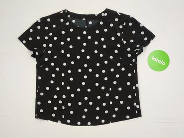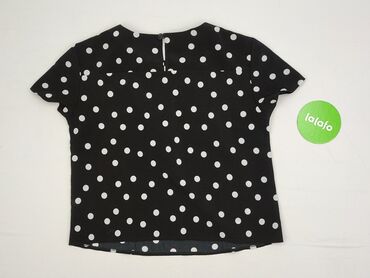 Bluzka damska w grochy - Kolor: czarny w białe kropki - Krój: luźny, lekko wydłużony tył, krótkie rękawy - Dekolt: zaokrąglony z krótkim rozcięciem z przodu - Detale: dwie dekoracyjne, metaliczne ...