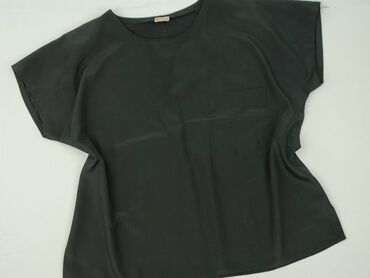 Czarna bluzka damska F3MM Collection. - Fason: luźny, z obniżoną linią ramion i rękawami typu nietoperz; dół zakończony szerokim ściągaczem. - Dekolt: głęboki, okrągły z dekoracyjnym złotym łańcus...