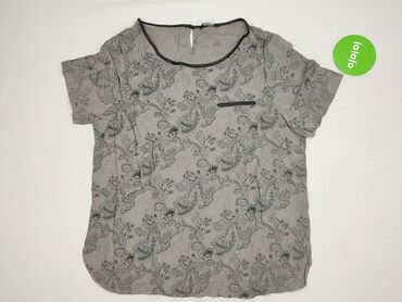 Bluzka damska z krótkim rękawem, rozmiar 46. - Kolorystyka: odcienie szarości z białym, efekt ombre. - Wzór: kwiatowy, dekoracyjne motywy roślinne na całej powierzchni. - Krój: luźniejszy, okrągły...