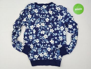 Bluzka damska Orsay z długim rękawem - Kolor: granatowy - Przód z nadrukiem kwiatowym w odcieniach bieli i szarości (róże, stokrotki itp.) - Tył gładki, granatowy - Dekolt: okrągły - Fason: lekko ...