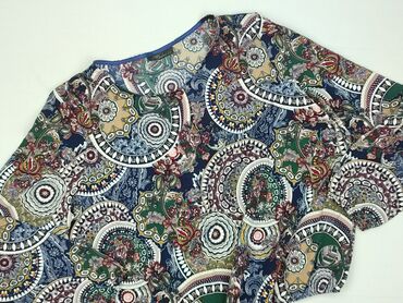 Bluzka damska Elit, rozmiar 44 - Fason: luźny, prosty krój z krótkim rękawem - Dekolt: okrągły - Materiał: 70% wiskoza, 30% poliester (lekka, przewiewna tkanina) - Wzór: ornamentalny, mozaikowo‑ge...