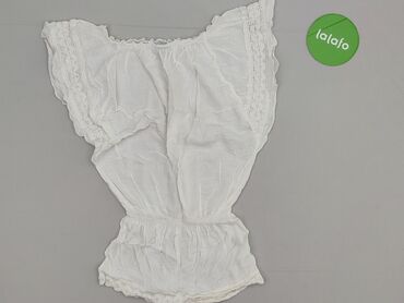 Bluzka damska w stylu boho, w kolorze jasnego beżu/ecru. - Krój: luźny, lekko przedłużany dół, krótkie rękawki motylkowe. - Dekolt: szeroki, z możliwością noszenia na ramionach lub opuszczony; wi...