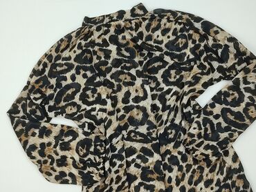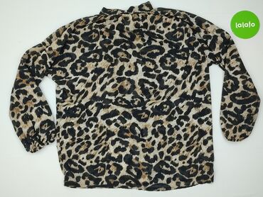 Bluzka damska MOHITO, rozmiar M - Wzór: panterka (beż/czerń) - Fason: dopasowany korpus, dekolt w kształcie serca/kwadratu, długie bufiaste rękawy - Materiał: elastyczna dzianina o lekko marszczone...Stan: