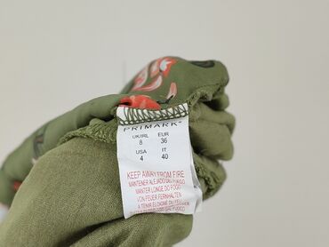 Bluzka damska Primark Cares - Rozmiar: S (UK/IRL 10/12, EU 38/40, USA 6/8, IT 42/44) - Kolor: oliwkowa z beżowym, nieregularnym, „kropkowanym” printem - Fason: zwiewny, z szerokimi rękawami typu k...