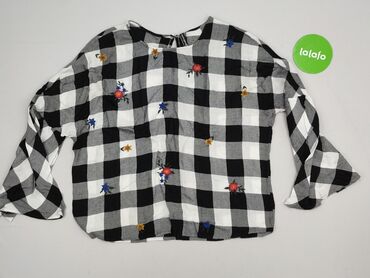 Bluzka damska marki Stradivarius z czarno-białą kratką vichy. Model z odkrytymi ramionami i długimi rękawami, zapinany na guziki z przodu. Idealna do codziennych stylizacji, zapewnia wygodę noszeni...Stan:
