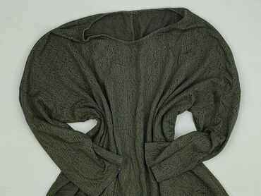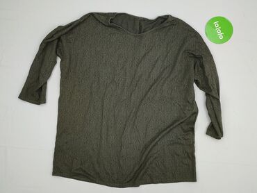 Damska bluzka z długim rękawem, khaki/oliwkowa - Fason: prosty, z miękkiej dzianiny z przodu i na rękawach; wstawki z lekko połyskującej tkaniny po bokach i na tyle - Dekolt: okrągły - Rękaw: dług...Stan: