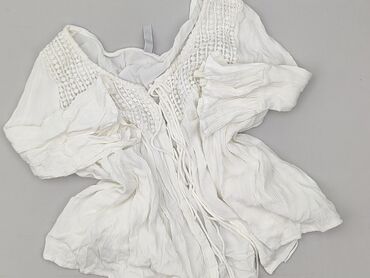 Biała bluzka boho River Island - Marka: River Island - Rozmiar z metki: 8 (UK) - Krój: hiszpanka/off-shoulder z odkrytymi ramionami - Rękawy: krótkie, rozszerzane z rozcięciami na ramionach - Deko...