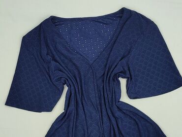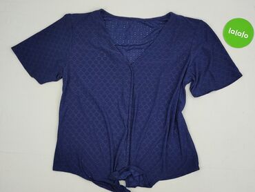 Damska bluzka z długim rękawem, granatowa - Krój: luźny, z subtelnymi zakładkami przy dekolcie - Dekolt: półokrągły - Rękawy: długie, zakończone gumką (delikatne bufki) - Dół: lekko zaokrąglony, z...