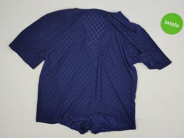 Krótki rękawBluzka damska z krótkim rękawem, granatowa, ażurowa