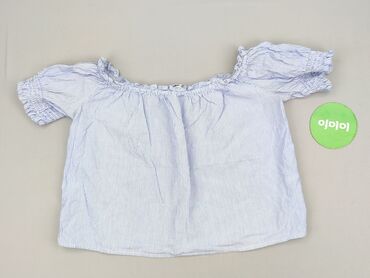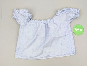 Bluzka damska HOUSE, rozmiar XS. - Krój: hiszpanka z odkrytymi ramionami, krótkie bufiaste rękawki, cienkie ramiączka - Zapięcie: rząd białych guzików z przodu - Wzór: niebiesko-białe, pionowe pas...Stan: