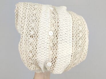 - Materiał: ażurowa, szydełkowa dzianina z pionowymi pasami różnych splotów (przewiewna, idealna na lato lub jako narzutka)