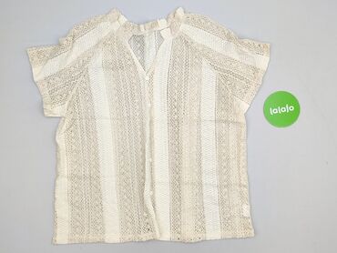 Biała koszula/bluzka damska z krótkim rękawem - Krój: luźny, zapinana na rząd guzików z przodu - Dekolt: w kształcie litery V - Rękaw: krótki, lekko bufowany - Dół: delikatnie wydłużony z tyłu, ma...