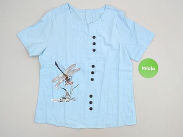 Bluzka damska Katalinski - Kolor: jasny błękit - Materiał: 100% bawełna (metka producenta) - Krój: luźny, z obniżoną linią rękawka/skrzydełkowe krótkie rękawy - Dekolt: okrągły - Przód: złoty, poł...