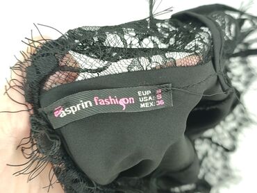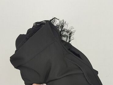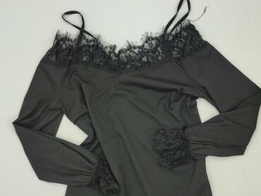 Czarna bluzka damska z koronkowymi rękawami - Krój: odkryte ramiona (cold shoulder) ze szerokimi ramiączkami - Rękawy: długie, z ażurowej koronki - Materiał: 95% poliester, 5% elastan – elastyczna...Stan: