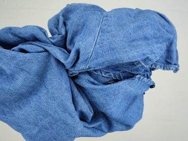 Bluzka damska z miękkiego, cienkiego denimu w kolorze jeansowym. - Fason: luźny, z marszczeniami przy karczku, długie rękawy. - Dekolt: wiązany – długie troczki pozwalają zawiązać kokardę lub pozo...