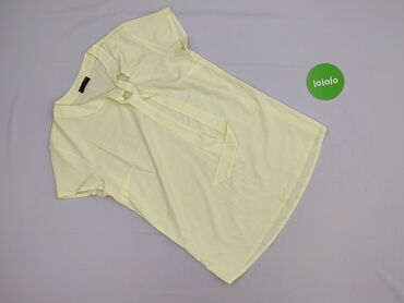 Żółta bluzka damska z lekkiego, zwiewnego materiału - Krój: luźny, asymetryczny dół z nakładającymi się panelami z przodu - Dekolt: głęboki w kształcie litery V - Rękawy: 3/4, lekko rozszerzane - ...