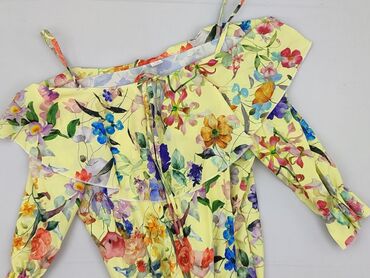 Długi rękawBluzka damska S/M – żółta w kwiaty, odkryte ramiona