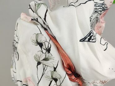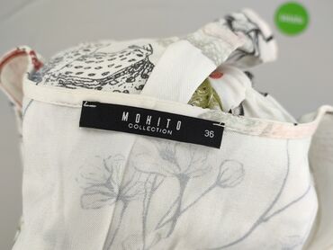 Bluzka damska MOHITO COLLECTION w rozmiarze 36, wykonana z lekkiego materiału w biało-niebiesko-szary wzór kwiatowy. Charakteryzuje się luźnym krojem z zapięciem pod szyją, idealnym na co dzień i n...