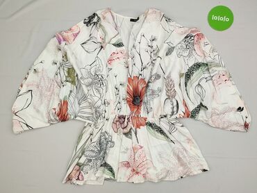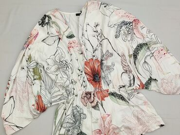 - Fason: luźny, z odcięciem i lekkim ściągaczem w talii, rozszerzane rękawy typu kimono