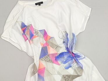 Bluzka damska FEMESTAGE Eva Minge - Kolor: biały - Rozmiar na metce: S - Fason: prosty, lekko wydłużony - Rękaw: 3/4 - Dekolt: łódkowy - Detale: górny panel z drobnym, poziomym prążkowaniem; dół i...